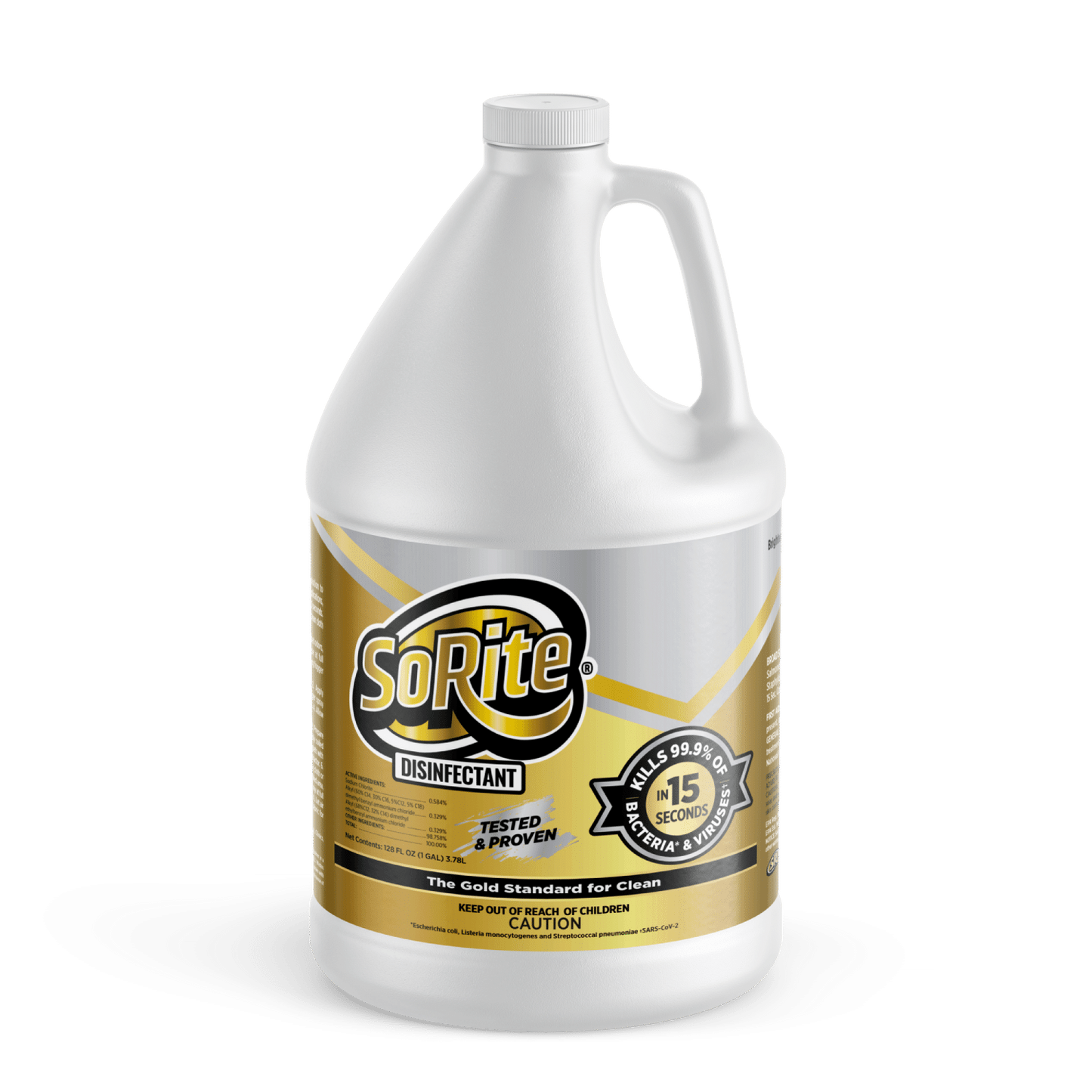 The future is SoRite! SoRite Hospital Disinfectant is a ready-to-use, rinse-free solution that cleans, disinfects, and deodorizes both hard and soft surfaces. SoRite Disinfectant is a one-step cleaner and disinfectant that kills bacteria* and viruses+ in just 15 seconds!